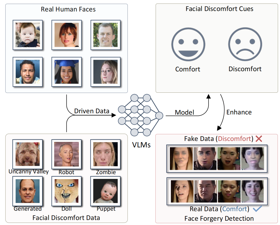 Exploiting Facial Discomfort Clues with Vision-Language Model for Generalizable Face Forgery Detection,